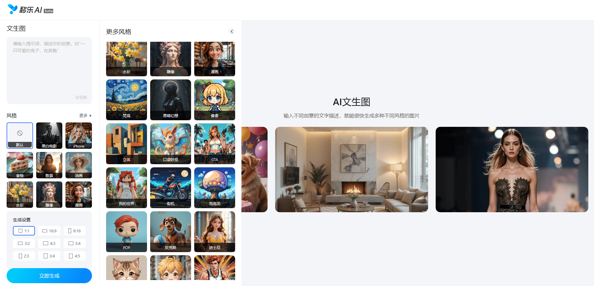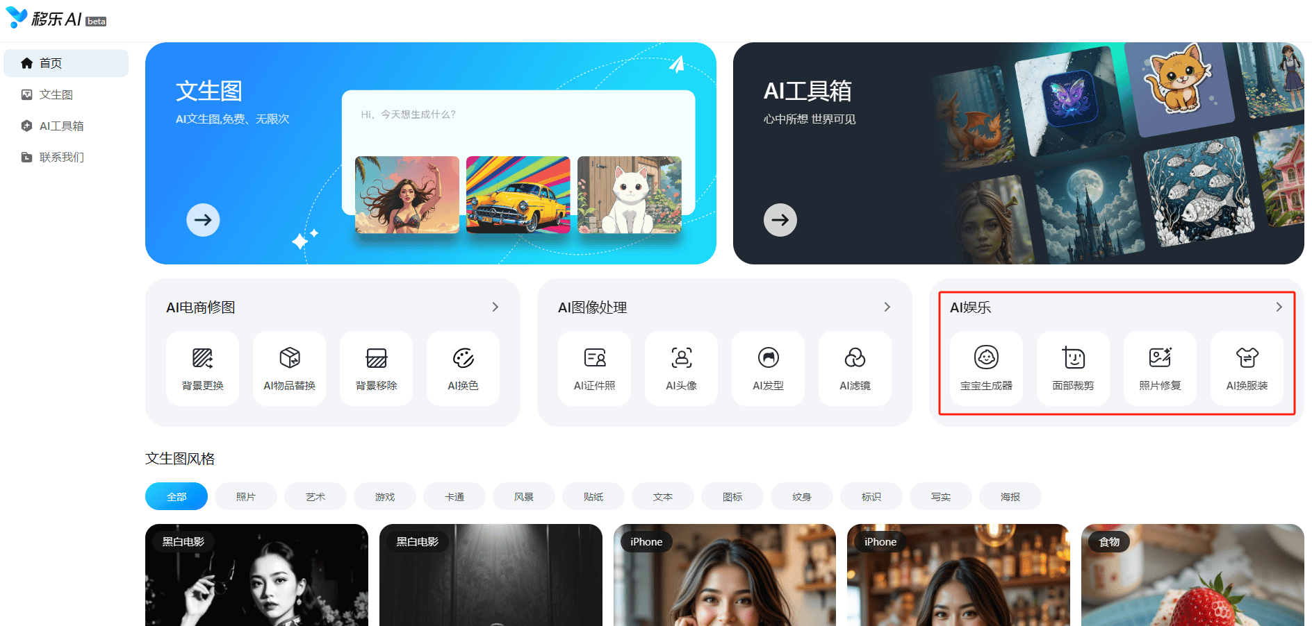 AI发型功能为用户供给了“云试发”的机遇,强势鞭策AI手艺从高端专业范畴公共日常糊口,除了移乐文生图,移乐AI网坐的魅力远不止于此。到个性宣扬的漫画风、时髦前卫的赛博朋克风,无需担心费用问题,让恍惚、破损的照片恢复清晰,移乐AI的AI电商修图东西为电商从业者供给了驾轻就熟的处理方案。移乐文生图是移乐AI网坐目前从打“明星产物”,用户只需正在输入框中简单敲下描述性的文字,建立起一个全方位、一坐式的智能创做平台。打破行业常规,通过上传父母照片,无论是专业设想师寻找灵感,
