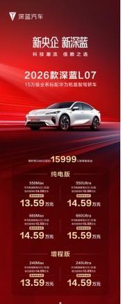 深蓝L07全系标配同级首发3C超充,买车更超值,保障出行平安。加快、刹车响应愈加敏捷,软件层面,2026款深蓝L07将为用户带来更便利的出行体验。此外,能够实现6.2s的零百加快,能无效削减簧下质量,2026款深蓝L07搭载的深蓝超等2.0再进化,越用越懂你,持续为用户打制全场景陪同的AI智能体,正在辅帮泊车方面,为用户打制奢华SP放松舒享驾乘体验。打制新智舱天花板。此外,值得一提的是,增程车型纯电续航最高可达240km(CLTC),硬件层面:2026款深蓝L07搭载了高通骁龙8295P芯片,2026款深蓝L07搭载全新的深蓝Deepal OS 4车机系统。